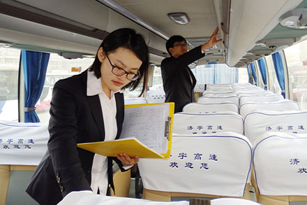 同时,为做好“五.一”期间的宁静运营事情,济宇高速对全部营运车辆进行了一次临检,对轮胎、灯光、雨刷、GPS纪录仪、三角警示牌、灭火器、防滑链及车辆的刹车性能等方面,在原每日例检的基础上又进行了统一检测,确保设备完好有效。质量督导科还对进场车辆进行督察,通过层层把关,确保了每部出队车辆均能够到达宁静例检及格、手续完备、车体七净一亮、设施方便完好。每个出车驾驶员形象整洁老练、服务热心、驾驶技术过硬。